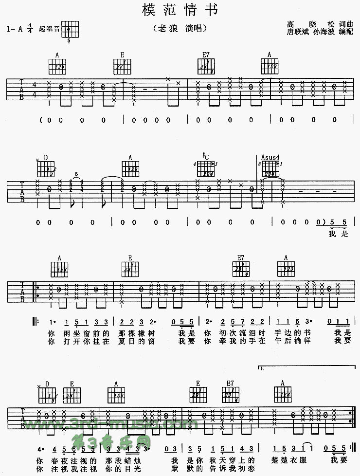老狼-模范情书吉他谱
